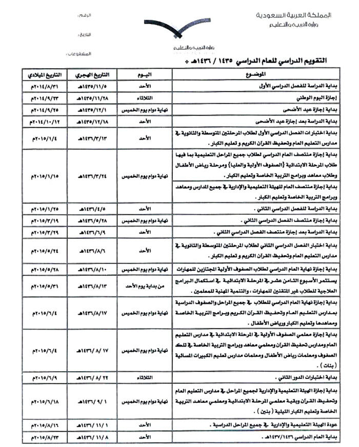 وزارة التعليم التقويم الدراسي الجديد. Check spelling or type a new query. Maybe you would like to learn more about one of these? We did not find results for: